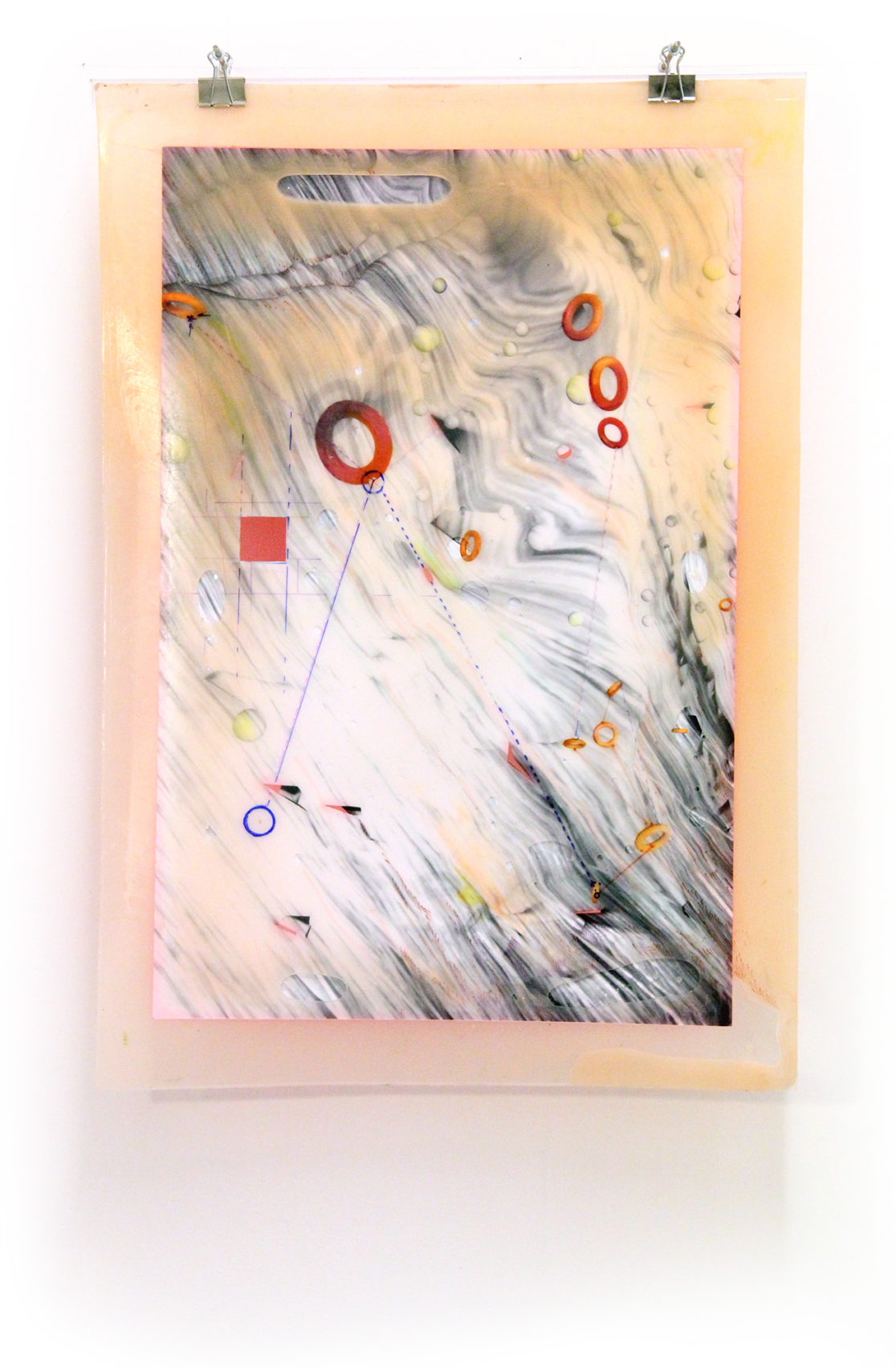 Digital print on paper, rubber, marker, acrylic, metal