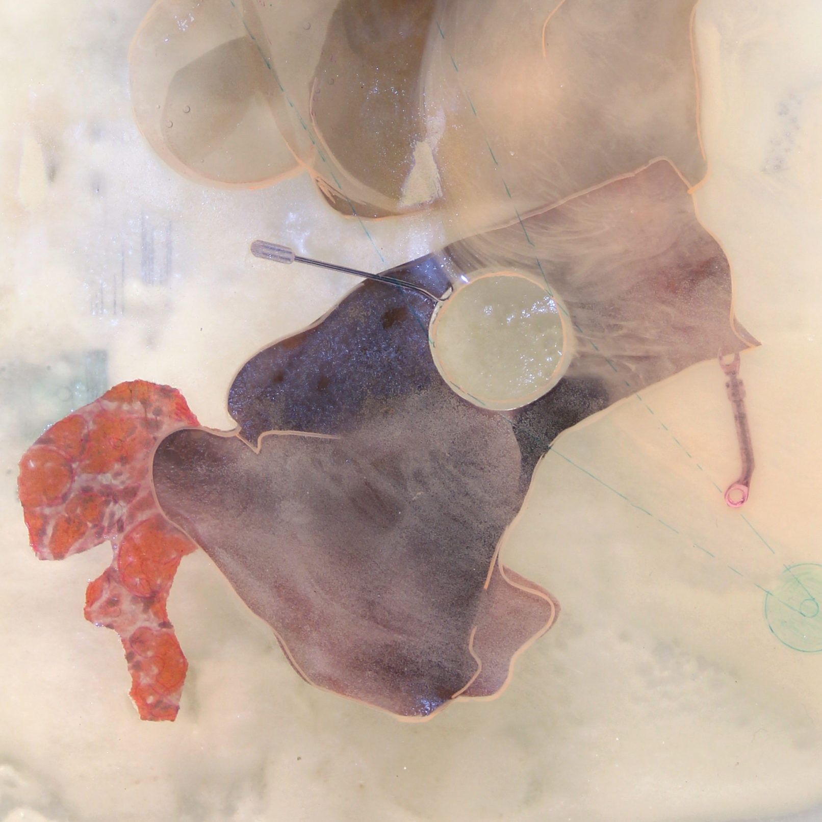 Inkjet print on paper, pencil, marker, rubber, soft foam, metal
